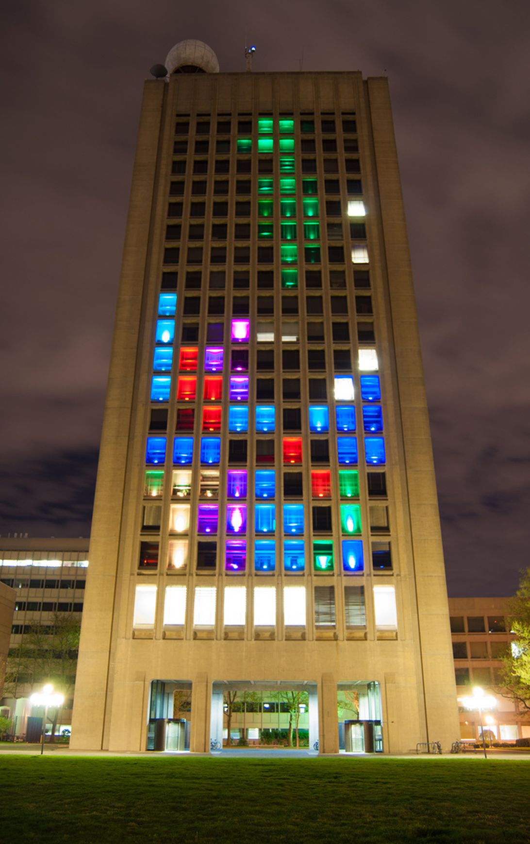In what was the second-largest full-color video display in the U.S, MIT students made history with the Tetris hack on April 20, 2012. This hack used the windows on the front of the Green Building to create a 17x9 pixelated screen as a playable Tetris game board. With each window illuminated by an LED light system, passersby could manipulate the Tetris pieces using a controller that was attached to a nearby booth. The game was equipped with three levels: after the first, the colors got paler and paler, making the blocks harder to distinguish. Players would joke that their bad scores could be broadcast across the river -- perhaps the one downside of an immensely cool project. After the hack, the students published the software they used, and created a suggestion board, so that there would be a wide range of possibilities for future generations to create.